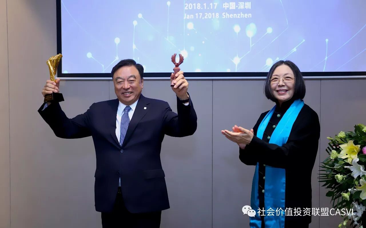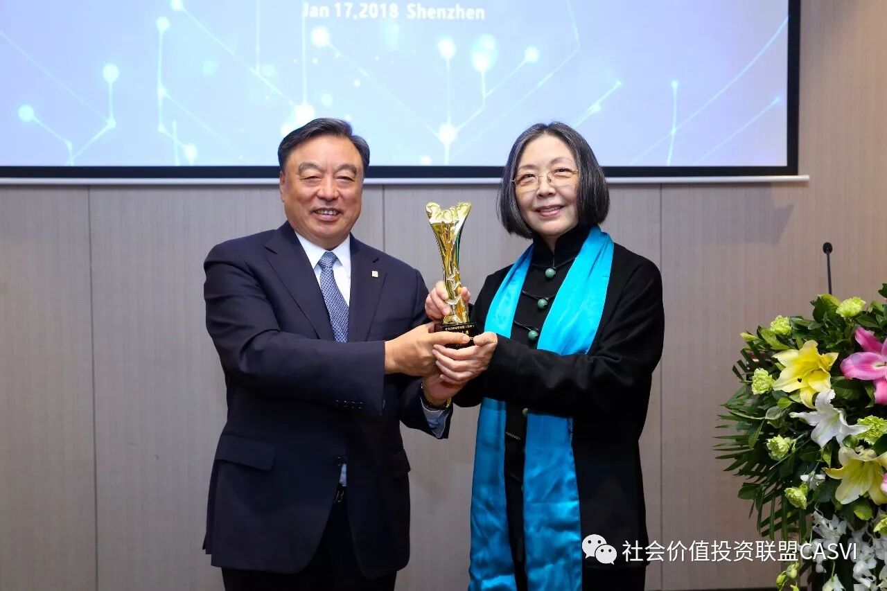 2018年主席马蔚华先生代表社投盟授予王平女士“创始主席”荣誉称号,并授予“盟主杯”。